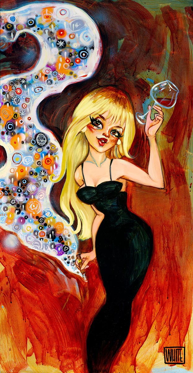 Prominent figurative artist Todd White’s exclusive limited edition ‘Bad for Your Health’, is a high impact piece that would stand out in any collection. Described in Todd’s own words as: “a painting about the ones you know are a total mistake from the beginning. Everything in your body is telling you to run, but you can’t; you’re frozen – maybe even hypnotised”, the 18 x 34” bold painting of a seductive blonde in a classic little black dress set against a vibrant orange background, is sure to mesmerise any viewer. Released in an edition of 135, this colourful artwork encourages us to embrace decadence in the company of a vibrant cast of devil-may-care party goers.