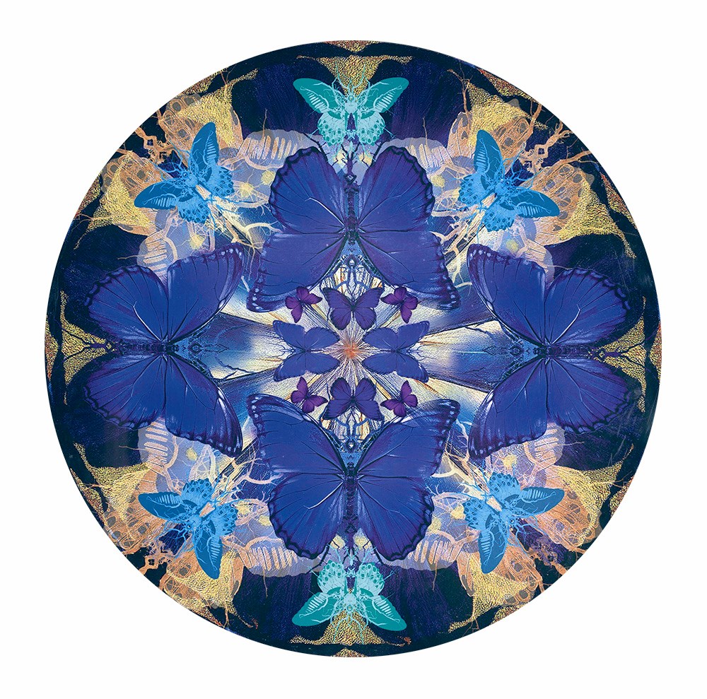 ‘Reborn’ is a vivid explosion of colour and symmetry from Maxim, reimagining the butterfly as a symbol of strength, resilience and reinvention. Rich cobalt and electric blue tones radiate from a circular kaleidoscopic design, creating a sense of movement and balance. Printed using a high-impact dye sublimation technique, this striking 32 x 32” piece is released as a limited edition of 150.